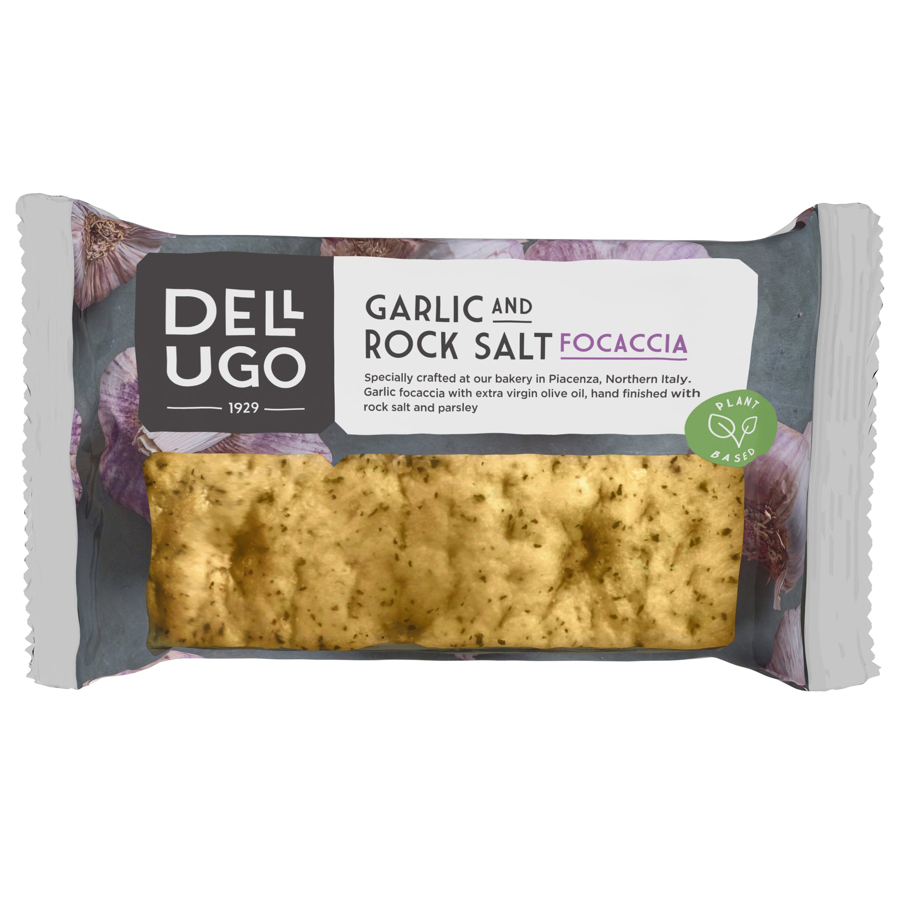 Specially crafted at our bakery in Piacenza, Northern Italy. Garlic focaccia with extra virgin olive oil, hand finished with rock salt and parsley.